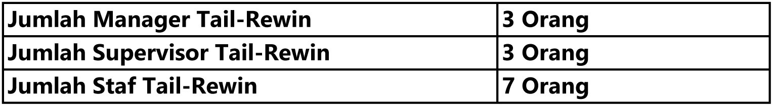 Pada contoh tabel diatas, hitunglah jumlah Manager, Supervisor dan Staf TAIL-REWIN sehingga mengghasilkan seperti gambar berikut: